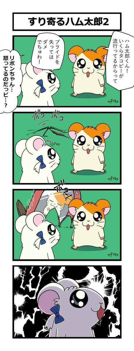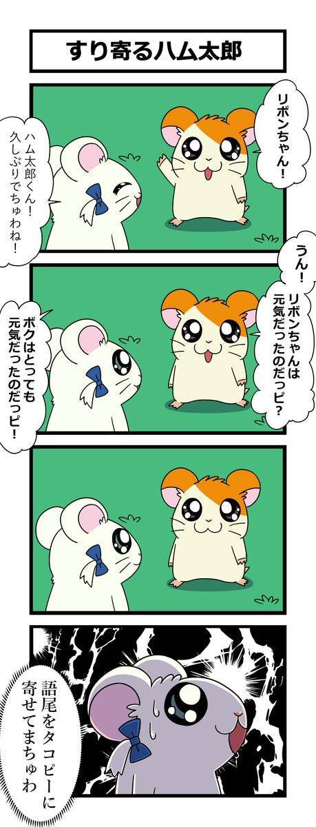 「こちらは10年前に描いた4コマ。多分2回しか描いてない生物なんですけど、じっくり見るとややかわいいかも…???」